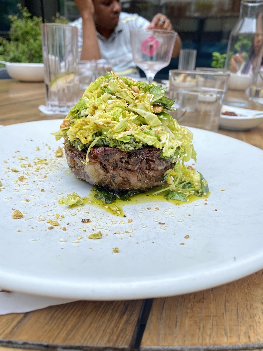 I really enjoyed this restaurant. I love the open kitchen plan. I only wish I got to sit closer to the action. The restaurant is very large and perfect for big groups. It also looks like they have a outside seating area, which would be perfect for the summer. The rundown - Onion tarte - I would recommend this. It was nice to sample new flavors with this appetizer. Focaccia bread - Who doesn't love bread? If you like bread, you can't go wrong with this. Although it is a little oily. The tomato conserva that it comes with is also something unique to experience. Stracci - Rabbit with parm and white wine sauce. I liked the fresh ribbon pasta. However, it loses its al dente finish quite quickly, so eat it while it is hot. Cavetelli with Crab - This is a little spicier than I thought it would be. The pasta was cooked perfectly and satisfyingly chewy. Ribeye - The mushrooms hit the nail on the head with umami flavor. Steak was cooked perfectly as expected. Scallop tartare - this could have been a skip for me. If you have eaten scallop sashimi before, this will not be something new. Negroni - divine Espresso gelato - great way to finish a delicious meal I really enjoyed the unique flavors and the innovation here. Our server was very pleasant and nice. I would definitely return!